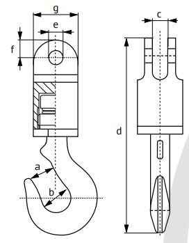 | Çalışma Yükü / t | Kanca No | Ölçüler / a-mm | Ölçüler / b-mm | Ölçüler / c-mm | Ölçüler / mm-d | Ölçüler / e-mm | Ölçüler / mm-f | Ölçüler / g-mm |