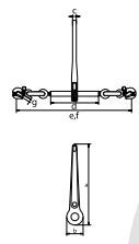 | Zincir Çapı | Ölçüler / a | Ölçüler / b | Ölçüler / c | Ölçüler / d | Ölçüler / e | Ölçüler / f | Ölçüler / g | Gerdirme Mesafesi | Gerdirme Kapasitesi / t | Test Yükü / t | Min Kopma Yükü / t | Ağırlık / kg |