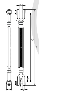 | Güvenli Çalışma Yükü / t | Diş Çapı / a inch | Gerdirme Mesafesi inch | Pimler Arası Kapalı Uzunluk / b-mm | Pimler Arası Açık Uzunluk / c-mm | Kapalı Uzunluk / d-mm | Çatal İç Genişliği / e-mm | Çatal İçi Boyu / f-mm | Pim Çapı / g-mm | Çatal Kalınlığı / h-mm | Çene Göz Genişliğ /i-mm | Birim Ağırlık / kg |